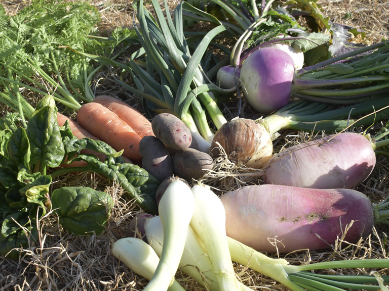 - 年間50種類ほどの野菜を全て露地栽培で、各品目に会った時期に栽培しています。
